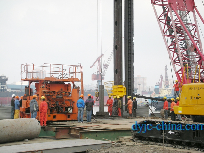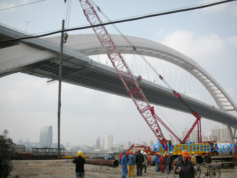 上海13號(hào)線世博園區(qū)專用交通盧浦大橋拔樁工程施工現(xiàn)場實(shí)景