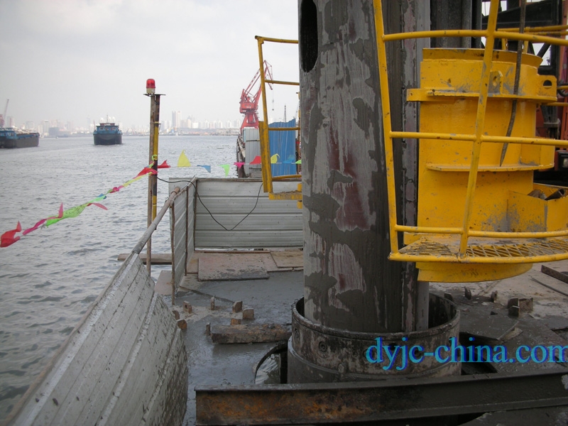 上海軌道交通13號(hào)線上鋼三長九號(hào)碼頭拔樁施工中,開始使用360度全回轉(zhuǎn)套管機(jī)將鋼砼結(jié)構(gòu)的碼頭切割后埋入直徑1500mm雙壁鋼套管再用FCEC雙回轉(zhuǎn)套管機(jī)將舊樁拔出