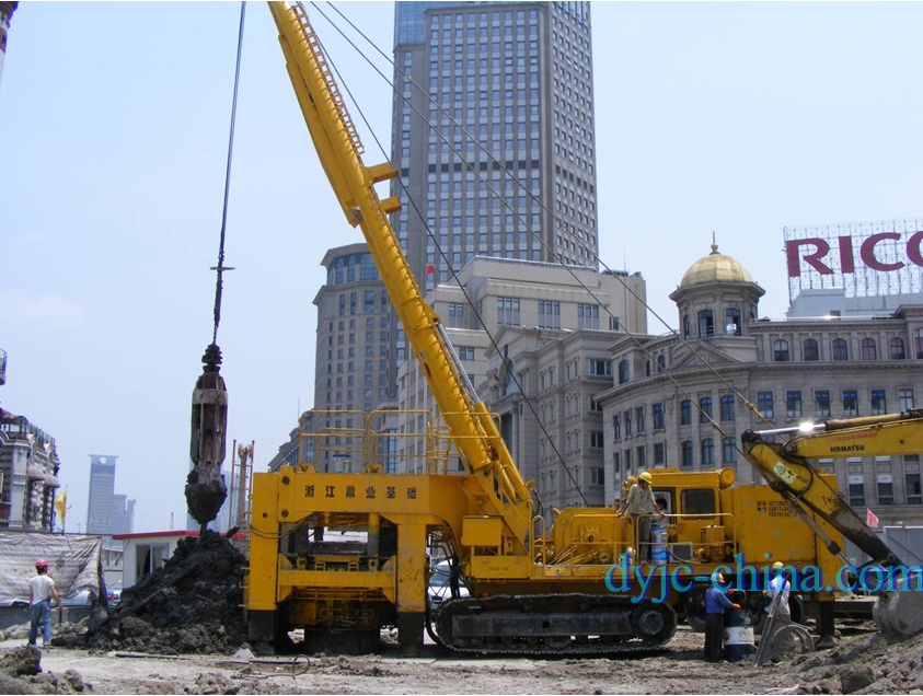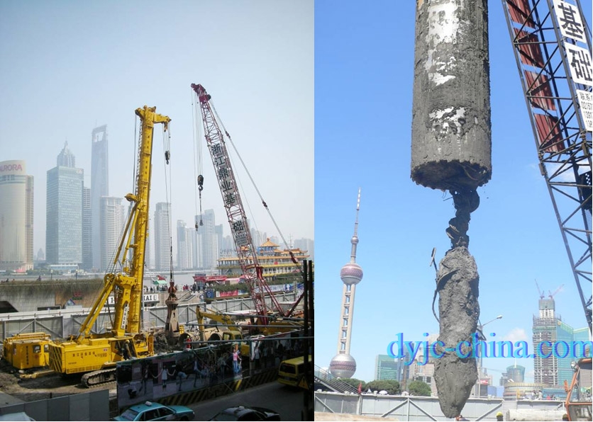 外灘通道是上海市“三縱三橫”交通主干網(wǎng)絡(luò)中三縱東線(xiàn)的組成部分,建造外灘地下通道的目的是緩解外灘地區(qū)的交通擁堵,分流三縱東線(xiàn)外灘的過(guò)境交通,改善外灘環(huán)境,提升城市功能,并服務(wù)上海世博會(huì)交通。因外灘通道改建工程圍護(hù)結(jié)構(gòu)施工,多處區(qū)域內(nèi)地下鋼筋混凝土結(jié)構(gòu)、塊石、舊樁等障礙物需要清除。清障施工必須克服地下管線(xiàn)錯(cuò)綜復(fù)雜、周邊建筑物較多(大多數(shù)是上海市保護(hù)性建筑)而且緊靠構(gòu)筑物、施工場(chǎng)地狹小,且障礙物分布區(qū)域不詳。我公司采用360度全回轉(zhuǎn)套管鉆機(jī)、專(zhuān)利設(shè)備FCEC正逆雙向同步全回轉(zhuǎn)清障機(jī)(專(zhuān)利號(hào):200720155651.3)進(jìn)行施工,對(duì)地下土體擾動(dòng)小、清障徹底,保證了上海外灘通道改建整體工程的順利施工
