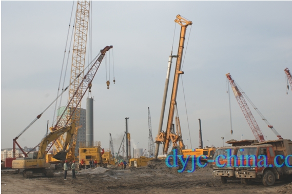 于家堡站大型交通樞紐配套市政公用工程位于京津城際延伸線于家堡站站房的兩側(cè),占地面積約10萬平方米,總建筑面積約19萬平方米,基坑超大超深,最深達31米,地下工程總投資約79億。其東側(cè)依次為地鐵B1線站廳公共區(qū)、出租車停車場及設(shè)備管理用房區(qū),其西側(cè)主要為公共換乘大廳、地鐵B2\Z1兩線站廳層公共區(qū)(付費區(qū))、地下商業(yè)區(qū)及設(shè)備管理用房區(qū)等。本標段施工京津城際延伸于家堡站房部分,2200~2400mmAM擴底鉆孔灌注樁總樁數(shù)567根,樁徑2200mm擴3200mm、2400mm擴3800mm,Φ1400mm永久性鋼管柱100根,600×600mm鋼格構(gòu)柱159根,本工程由我公司承擔樁基及永久性鋼管柱的安裝施工,樁基成孔采用德國原裝寶峨BG 40等大直徑大功率旋挖鉆機施工,有效保證了樁身垂直度,并采用具有國際領(lǐng)先水平的AM可視可控液壓擴孔工法進行擴孔施工,保證了擴底成孔的有效直徑,樁基施工完成即采用專利技術(shù)HPE液壓垂直插入施工工藝安裝永久性鋼管柱,省時省力,精度高。保證了整體工程質(zhì)量,得到了總包方及建設(shè)單位的高度贊揚。