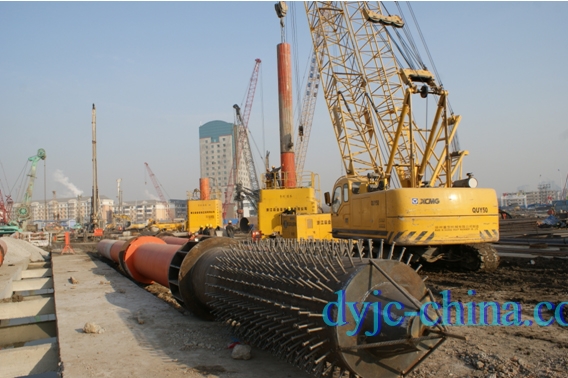 于家堡站大型交通樞紐配套市政公用工程位于京津城際延伸線于家堡站站房的兩側(cè),占地面積約10萬平方米,總建筑面積約19萬平方米,基坑超大超深,最深達31米,地下工程總投資約79億。其東側(cè)依次為地鐵B1線站廳公共區(qū)、出租車停車場及設(shè)備管理用房區(qū),其西側(cè)主要為公共換乘大廳、地鐵B2\Z1兩線站廳層公共區(qū)(付費區(qū))、地下商業(yè)區(qū)及設(shè)備管理用房區(qū)等。本標段施工B2線及公交換乘大廳,全部樁基及永久性鋼管柱均由我公司承擔施工,2200mm大直徑鉆孔灌注樁總樁數(shù)389根,其中AM擴底鉆孔灌注樁216根,樁徑2200mm擴3200mm、Φ2400擴3800mm,Φ1000~1400mm永久性鋼管柱253根,樁基成孔大部分采用進口大直徑大功率旋挖鉆機施工,有效保證了樁身垂直度,并采用具有國際領(lǐng)先水平的AM可視可控液壓擴孔工法進行擴孔施工,保證了擴底成孔的有效直徑,樁基施工完成即采用專利技術(shù)HPE液壓垂直插入施工工藝安裝永久性鋼管柱,省時省力,精度高。保證了整體工程質(zhì)量,得到了總包方及建設(shè)單位的高度贊揚。