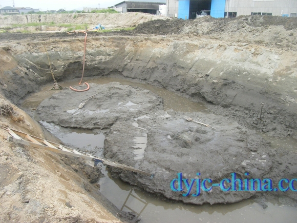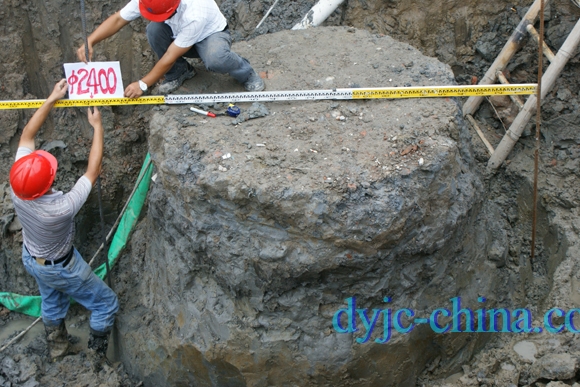 RJP開(kāi)挖情況,最大直徑達(dá)2400mmRJP超級(jí)高壓噴射工法施工現(xiàn)場(chǎng)