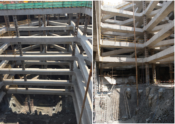 據(jù)新民晚報(bào)2015年6月26日A9版《申城最深樓宇地下空間筑底》報(bào)道:昨天下午,北外灘黃浦江邊,由上海建工集團(tuán)總承包建造中的星港國(guó)際中心工程最深達(dá)36m的地下空間基礎(chǔ)成功“筑底”,相當(dāng)與在地下建造1棟12層的樓房,創(chuàng)出了迄今為止申城房屋建筑最深地下空間施工新記錄。其中,該工程地下空間深坑(坑中坑)支護(hù)及坑底止水加固工程采用我浙江鼎業(yè)基礎(chǔ)工程有限公司RJP大直徑旋噴樁技術(shù)進(jìn)行施工。