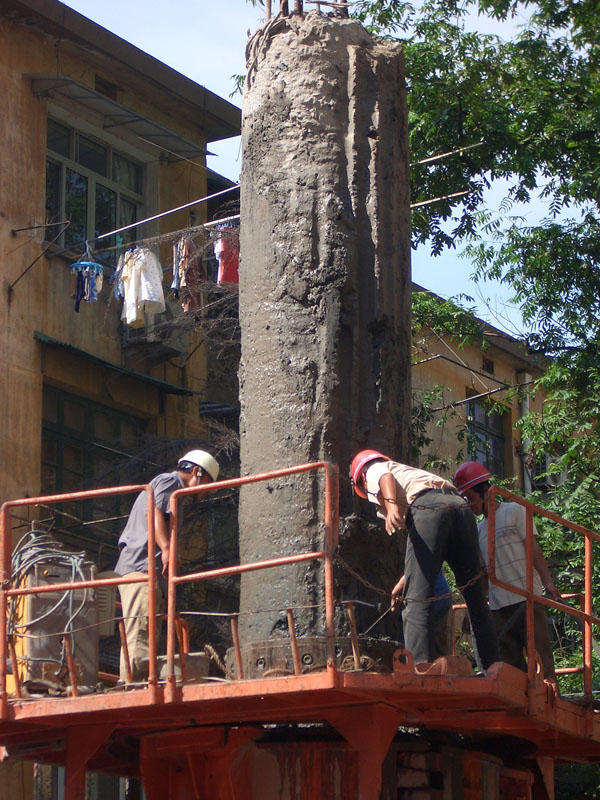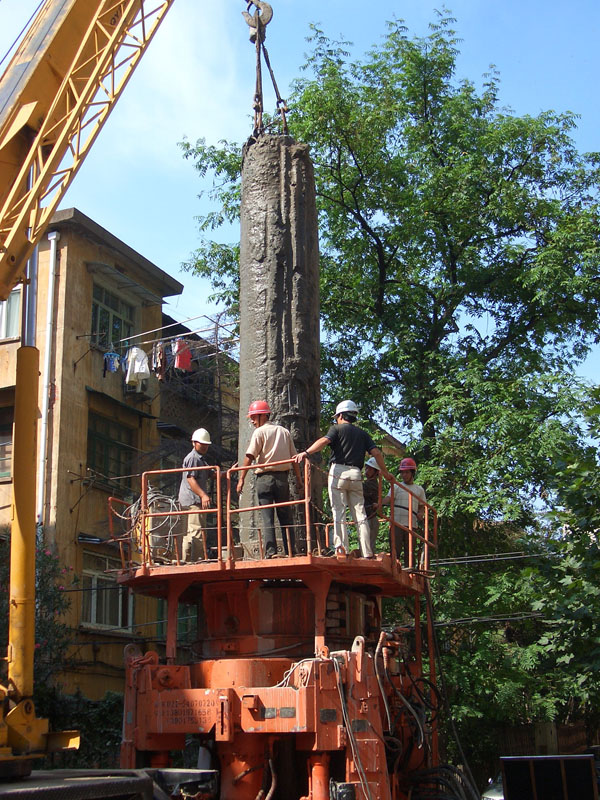 在場地復(fù)雜、狹小的居民區(qū)內(nèi)拔樁現(xiàn)場實景