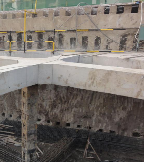 本項目為內(nèi)插H型鋼的兼具止水帷幕與受力圍護結(jié)構的TRD深層攪拌攪拌墻。墻深34.6米, 型鋼插入27米,成墻厚度為850mm,基坑開挖深度為17米