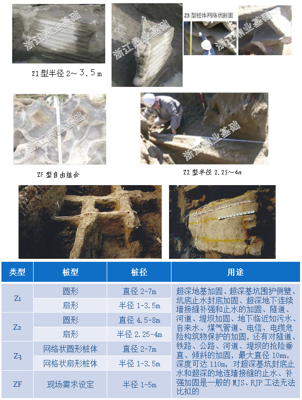 的優(yōu)點是各種多噴嘴可以針對性的優(yōu)良精準組合,保證了成樁的質(zhì)量,以上是施工開挖后的實景圖