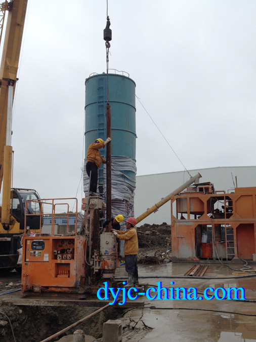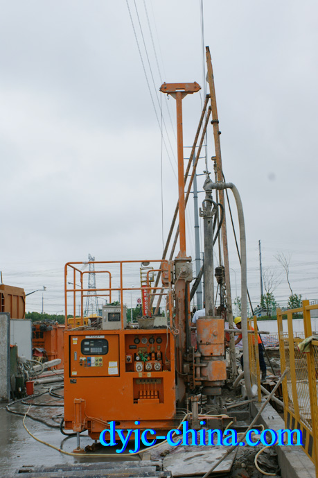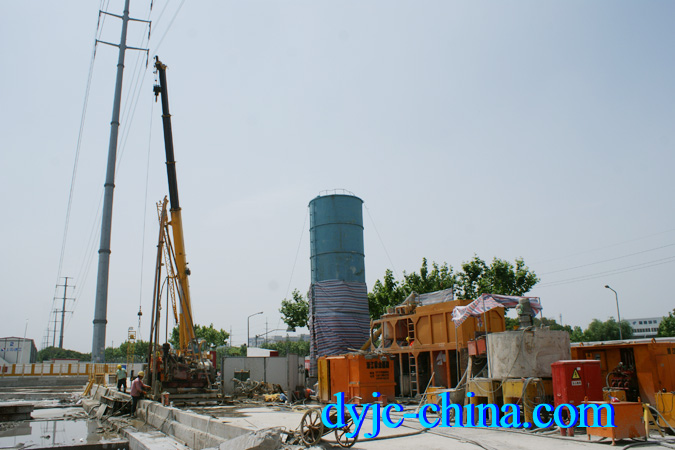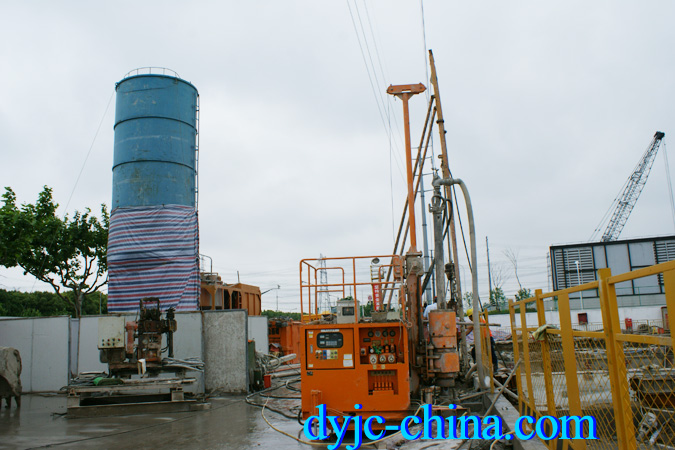 本工程考慮原地連墻施工深度較淺,為防止本工程施工基坑開挖出現(xiàn)透水現(xiàn)象,在原地鐵施工的地連墻下部做一排MJS工法旋噴樁,旋噴深度至地面以下43m,噴漿至現(xiàn)施工的基坑底(地面以下18m)。MJS大直徑旋噴樁直徑為2400mm,中心間距1400mm,旋噴樁中心離開地連墻約600mm,鉆孔深度約43m深度有效樁長25m。