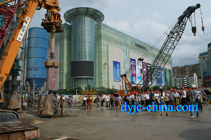 本工程為單建式大型地下空間平戰(zhàn)結(jié)合人防工程,坐落在福州市萬寶商圈核心位置地下。地面為商業(yè)景觀廣場(chǎng)及城市道路,包括東西向的工業(yè)路(西二環(huán)路至白馬路)、南北向的西二環(huán)路及萬象城廣場(chǎng)、寶龍廣場(chǎng)、蘇寧廣場(chǎng)組成。周邊為已建和在建的大型商業(yè)體及軌道交通站。本工程設(shè)計(jì)地下兩層(高度約18.0米),總建筑面積共約15.74萬平方米。地下一層建筑面積為9.98萬平方米,其中包含夾層約4.31萬平方米,地下二層建筑面積為5.76萬平方米,采用AM擴(kuò)底樁Φ1200擴(kuò)2000mm,總樁數(shù)985根,鉆孔深度45~50m。